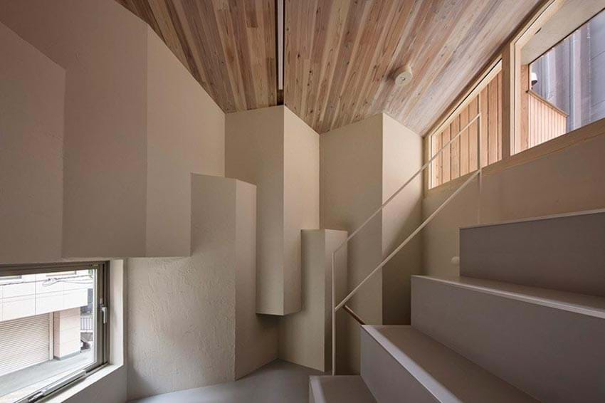 Bước vào bên trong, không gian không rộng như tưởng tượng. Nhưng cũng không hề ngột ngạt. Những tầng lệch nối nhau, cao – thấp – rồi lại mở ra bất ngờ. Ánh sáng đi vào từ những khe nhỏ, không nhiều, nhưng đủ để nhìn thấy vân gỗ, thấy bụi bay, thấy cả một nhịp sống chậm hơn ở bên trong.