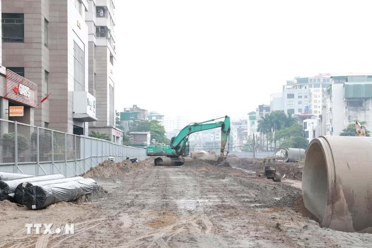 Tiến độ giải phóng mặt bằng tuyến đường Vành đai 2.5 Hà Nội qua phường Cầu Giấy dài 1.130m, đang được tập trung hoàn tất giải phóng mặt bằng để phục vụ thi công. Ảnh: TTXVN