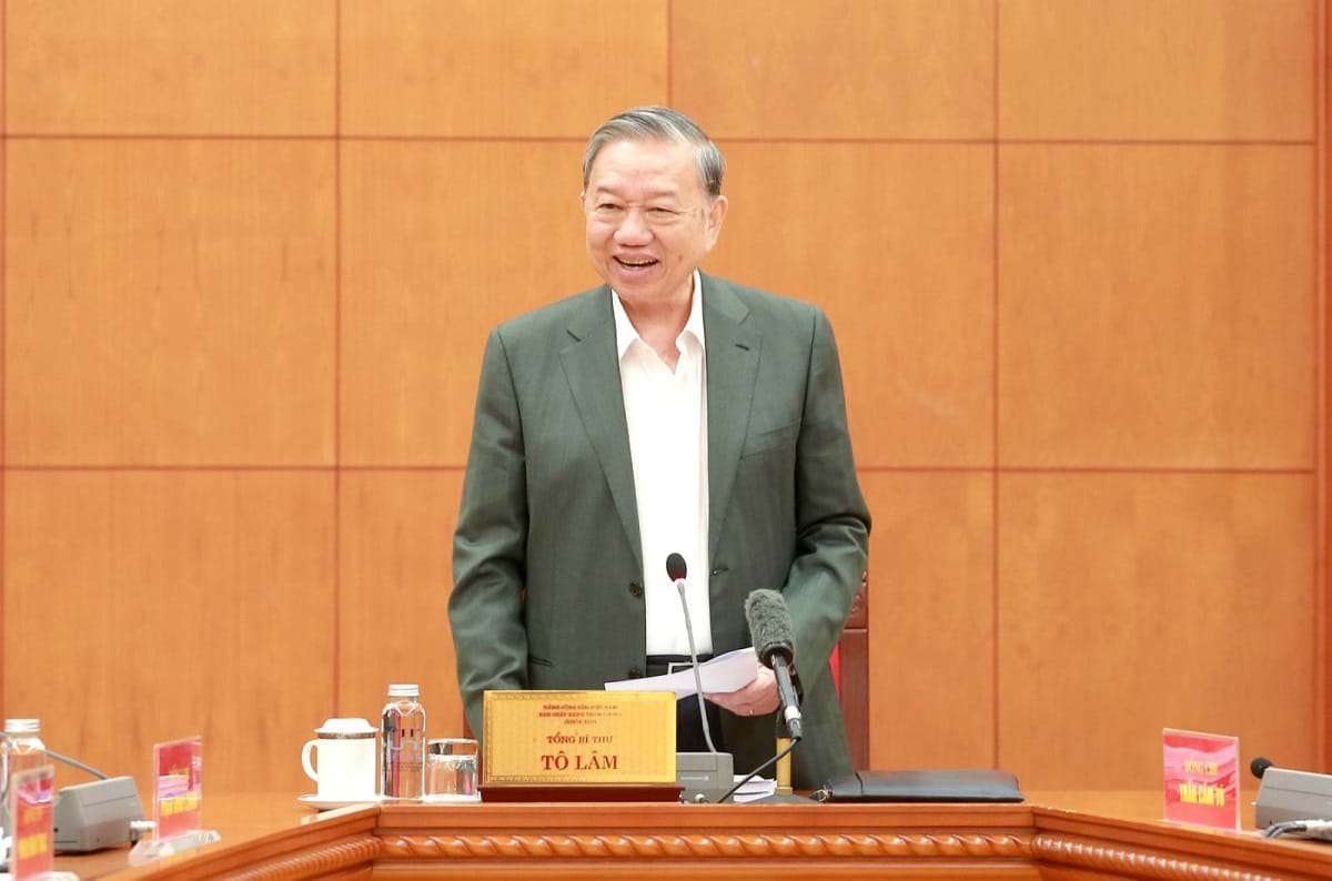 Tổng Bí thư Tô Lâm phát biểu chỉ đạo tại cuộc làm việc.