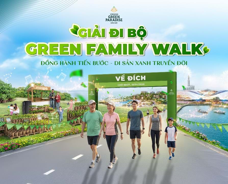 Giải đi bộ Green Family Walk sẽ chính thức diễn ra tại Vinhomes Green Paradise vào ngày 19.4.