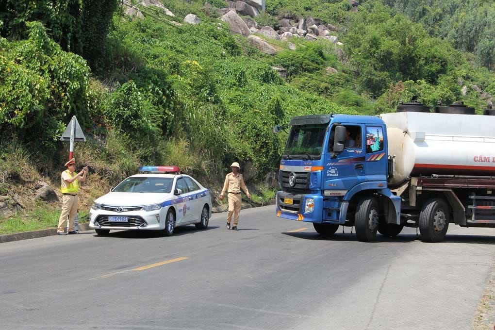 Lực lượng cảnh sát giao thông điều tiết giao thông, yêu cầu phương tiện có trọng tải lớn không đi qua Đèo Cả.