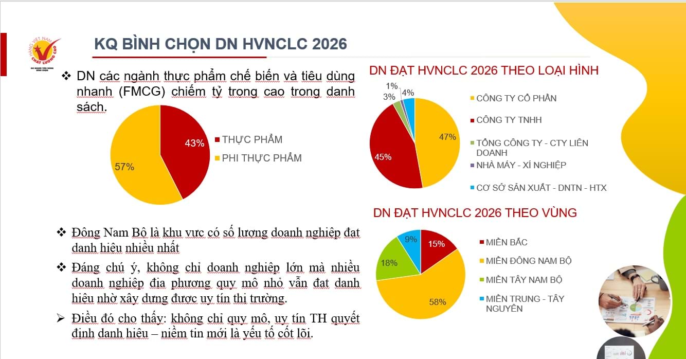 Ở chiều ngược lại, 42 doanh nghiệp lần đầu được bình chọn mở ra một lát cắt khác: sự xuất hiện của lớp doanh nghiệp mới với định hướng rõ hơn về giá trị gia tăng, thân thiện môi trường, chú trọng sức khỏe và minh bạch thông tin.