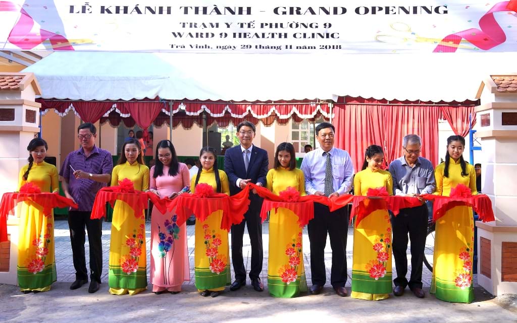 Cắt băng khánh thành Trung tâm Y tế Phường 9, thành phố Trà Vinh do Hanwha Life Việt Nam tài trợ xây dựng.