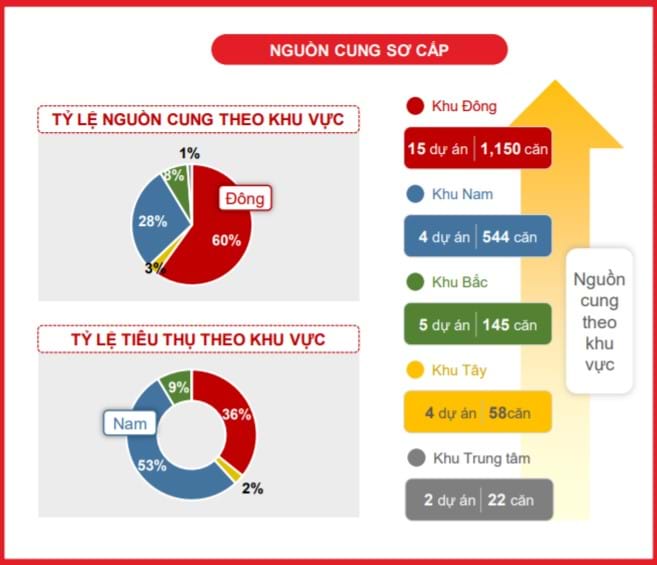 Nguồn cung sơ cấp các bất động sản thấp tầng khu Đông TP.HCM (Quận 2, 9, Thủ Đức) tiếp tục dẫn đầu thị trường trong quý I vừa qua, theo số liệu từ DKRA Việt Nam. Tổng cộng 15 dự án tương ứng 1.150 căn đã được đưa ra thị trường, chiếm 60% nguồn cung sơ cấp.