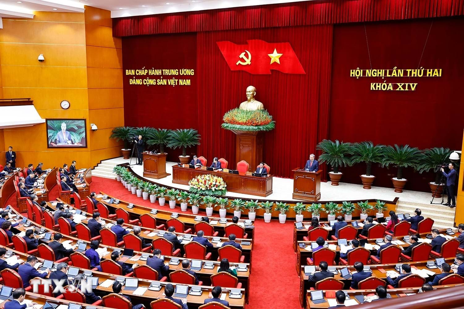 Phiên khai mạc Hội nghị lần thứ hai Ban Chấp hành Trung ương Đảng khóa XIV. Ảnh: Doãn Tấn/TTXVN