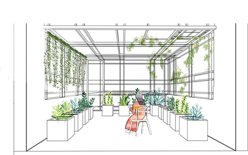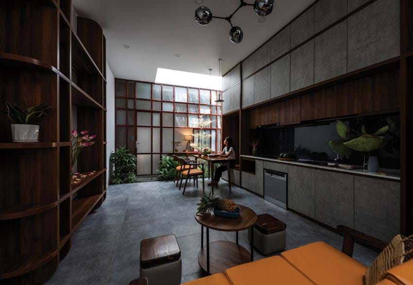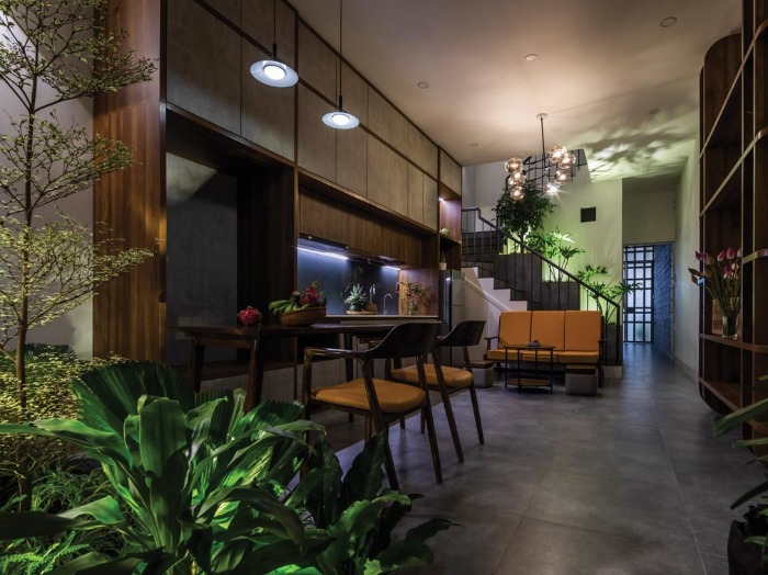 Về bố trí mặt bằng, thiết kế đảm bảo được một không gian chức năng sẽ phải gắn liền một không gian xanh (giếng trời + khoảng xanh). Từ đó, tất cả các không gian đều được tiếp xúc với cây xanh và ánh sáng tự nhiên.