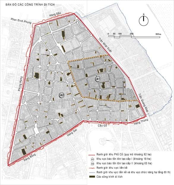 Khu phố cổ Hà Nội, với mạng lưới các phố hàng là nơi sinh sống, làm việc, giao thương, các đình, đền thành hoàng của phường nghề là nơi diễn ra các công việc chung của cộng đồng. Ảnh: Ban Quản lý Phố cổ