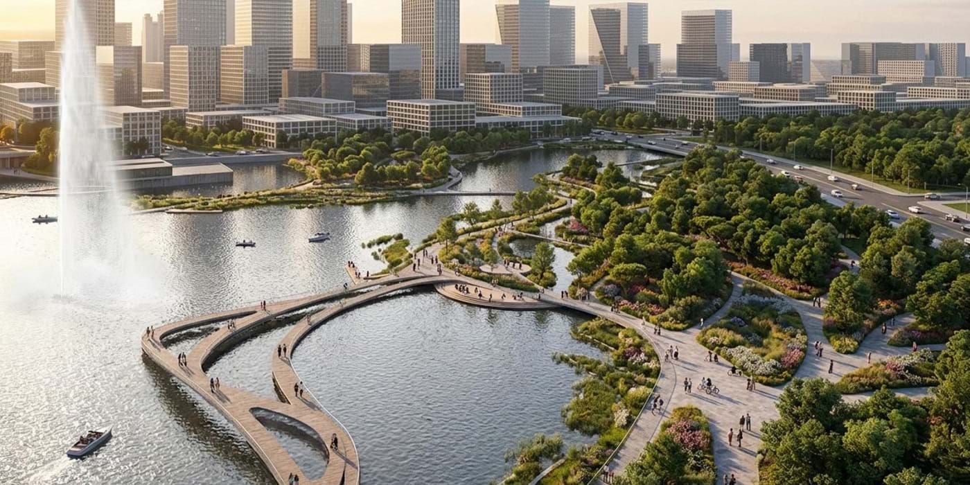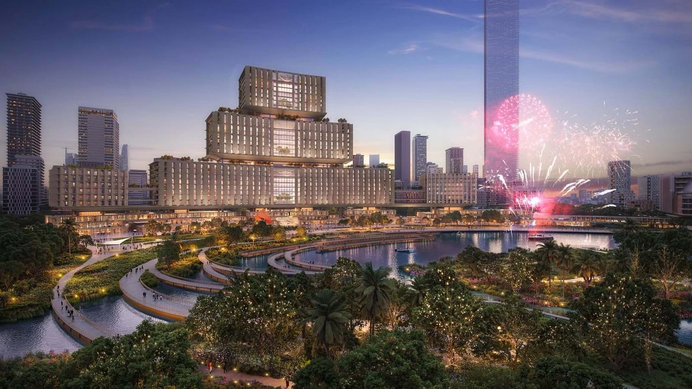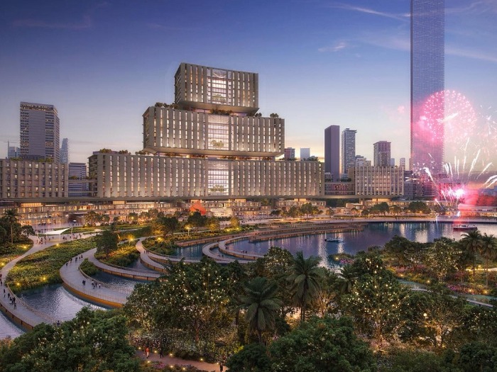 Ở phía ngoài, công viên trung tâm với mặt hồ khoảng 12ha đóng vai trò như một “lõi xanh”. Không gian này được định hướng tổ chức các hoạt động trình diễn nhạc nước, pháo hoa, tạo điểm nhấn cho toàn bộ khu vực Thủ Thiêm.