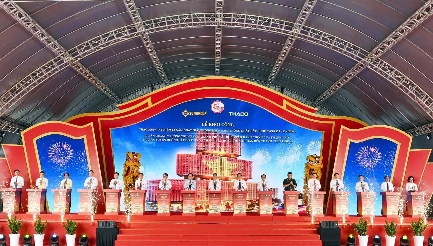 Sáng 29.4, tại khu vực lõi Khu đô thị mới Thủ Thiêm, UBND TP.HCM cùng Tập đoàn Sun Group chính thức khởi công Dự án Quảng trường Trung tâm Thành phố và Trung tâm Hành chính, với tổng mức đầu tư gần 29.600 tỷ đồng. Dự án cũng nằm trong nhóm 5 công trình trọng điểm thuộc 5 lĩnh vực mũi nhọn được thành phố đồng loạt khởi công, trao chứng nhận đầu tư nhân kỷ niệm 51 năm thống nhất đất nước (30.4.1975 – 30.4.2026).