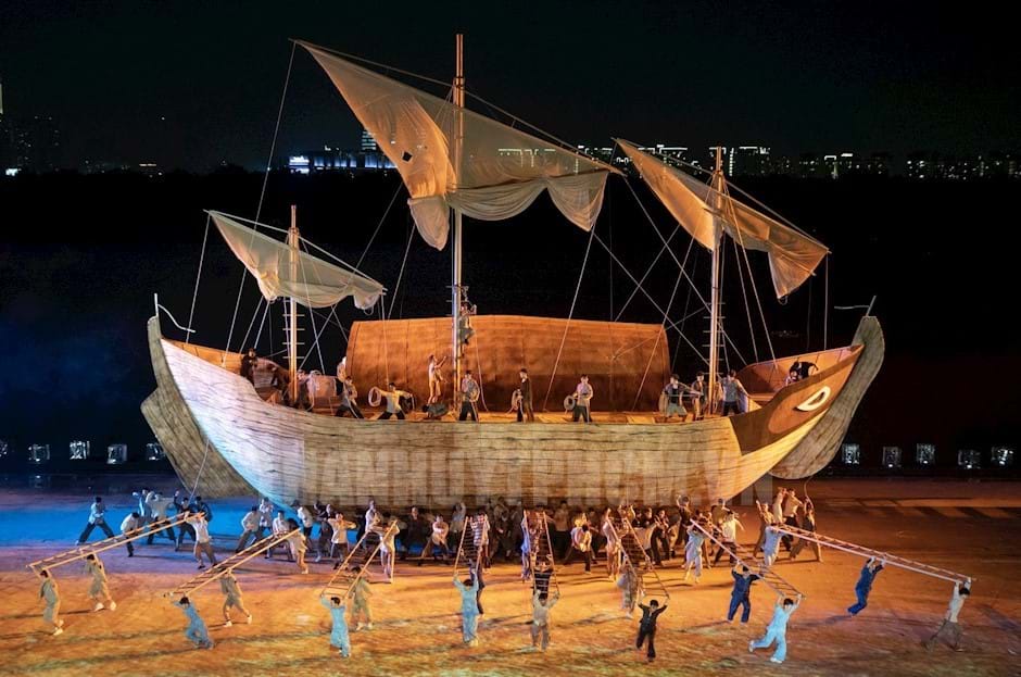 Tiết mục biểu diễn tái hiện cảnh đóng tàu tại Lễ hội Sông nước TP.HCM lần thứ 2 năm 2024. Ảnh: hcmcpv.org.vn