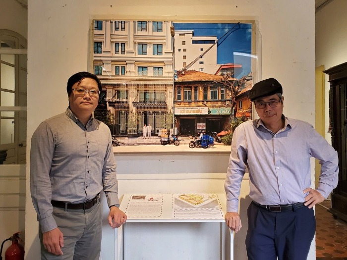 Triển lãm với các tác phẩm của nghệ sĩ Nguyễn Thế Sơn (trái) với sự đồng hành của KTS. Trần Huy Ánh (phải).