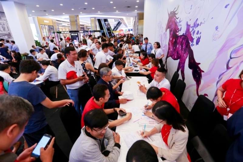 Khu vực làm thủ tục đặt cọc xe ô tô VinFast đông kín khách hàng