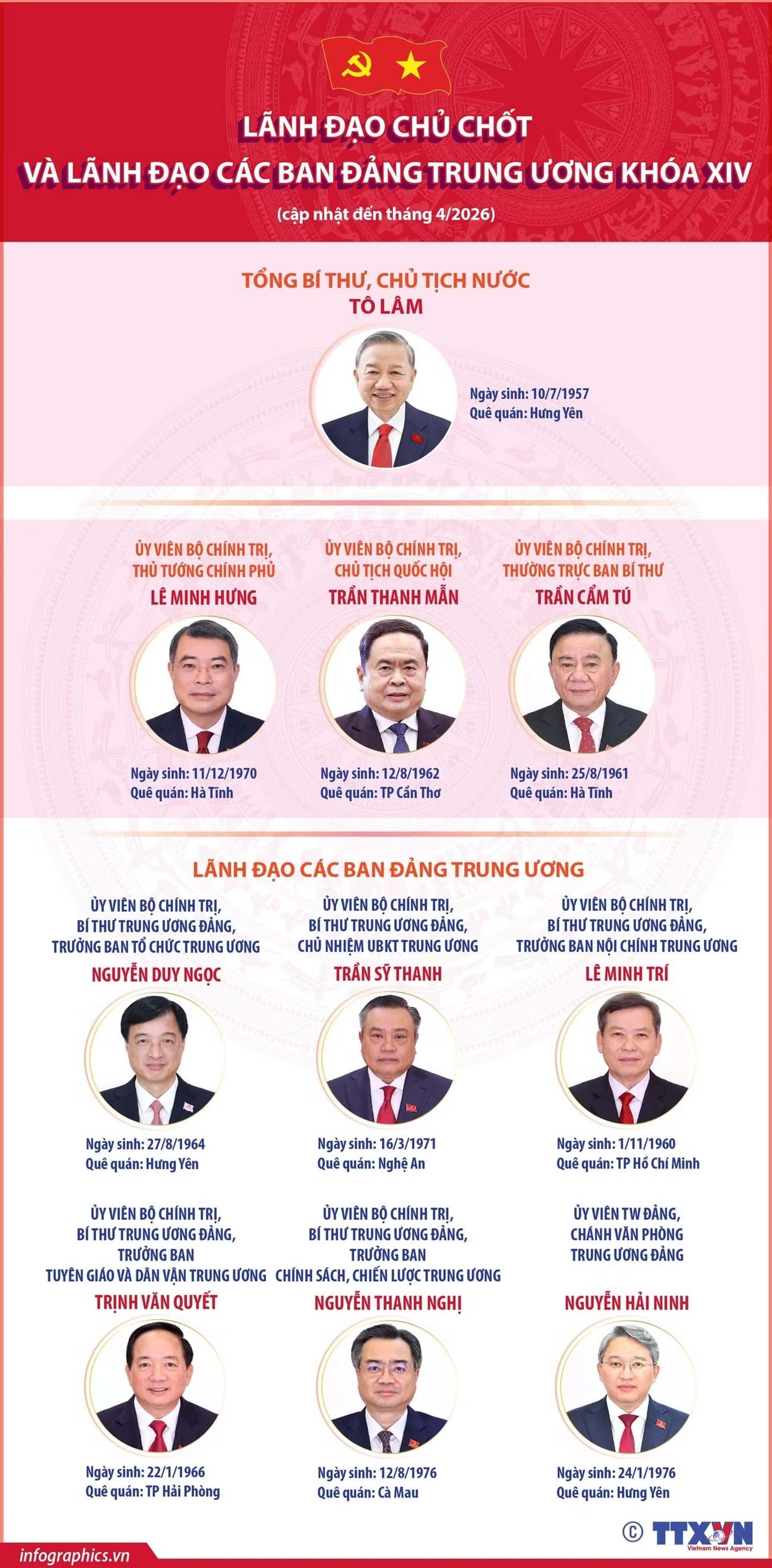 Người Đô Thị xin trân trọng giới thiệu lãnh đạo chủ chốt và lãnh đạo các Ban Đảng Trung ương khóa XIV.