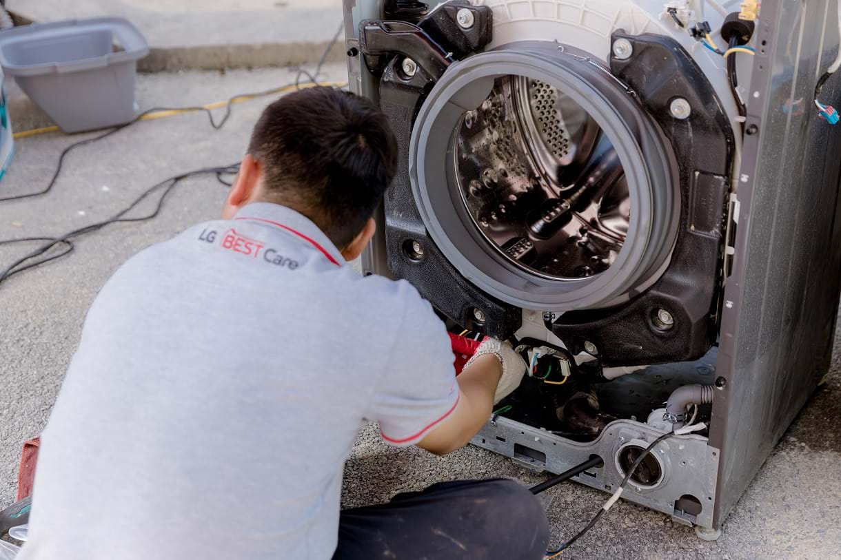Kỹ thuật viên của LG kiểm tra và vệ sinh đối với các sản phẩm LG bị hư hại. Ảnh: LG