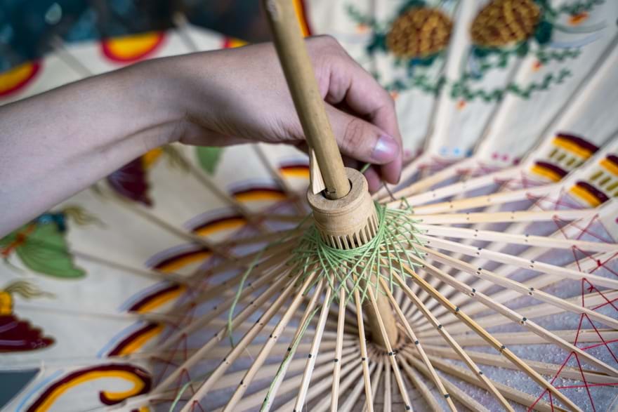 Từ nền tảng ấy, Lâm Ơi và Nghiêu Thiên tiếp tục thổi hồn sáng tạo. Nghiêu Thiên phát triển chuỗi lọng thủy sinh Việt như Lọng Cua, Lọng Cá…, vừa mang tinh thần dân gian vừa gợi ngôn ngữ tạo hình hiện đại. Còn Lâm Ơi, với nền tảng sơn mài truyền thống, kể chuyện qua chất liệu, lớp phủ và nếp giấy, đem lại cho lọng hơi thở đương đại mà vẫn giữ được hồn xưa.