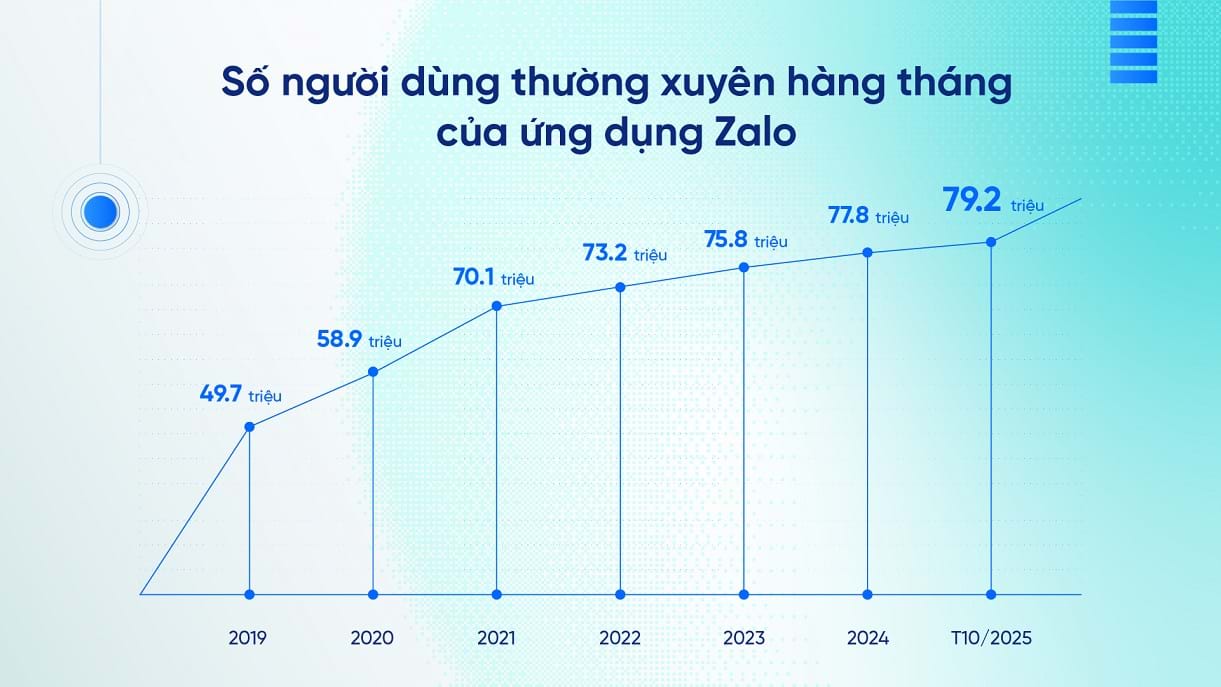 Theo công bố của Zalo ngày hôm nay (5.11.2025), chỉ trong 9 tháng đầu năm 2025, nền tảng này đã lập kỷ lục mới với 79,2 triệu người dùng thường xuyên hàng tháng, tăng hơn 1,4 triệu so với cuối năm 2024. Lượng tin nhắn được gửi qua Zalo cũng tăng lên mức 2,1 tỷ mỗi ngày, phản ánh nhu cầu giao tiếp trực tuyến ngày càng lớn của người dùng.