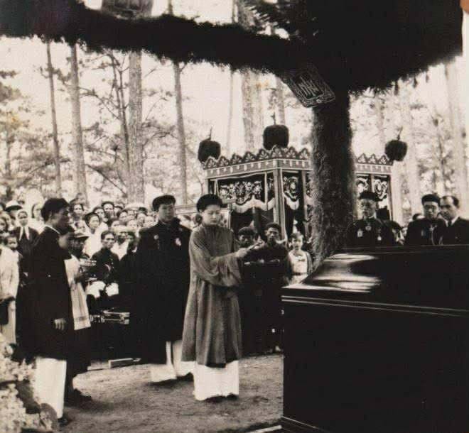 Hoàng hậu Nam Phương và Vua Bảo Đại trong đám tang Quận Công Long Mỹ Nguyễn Hữu Hào tại Dalat. Ảnh: TGCC