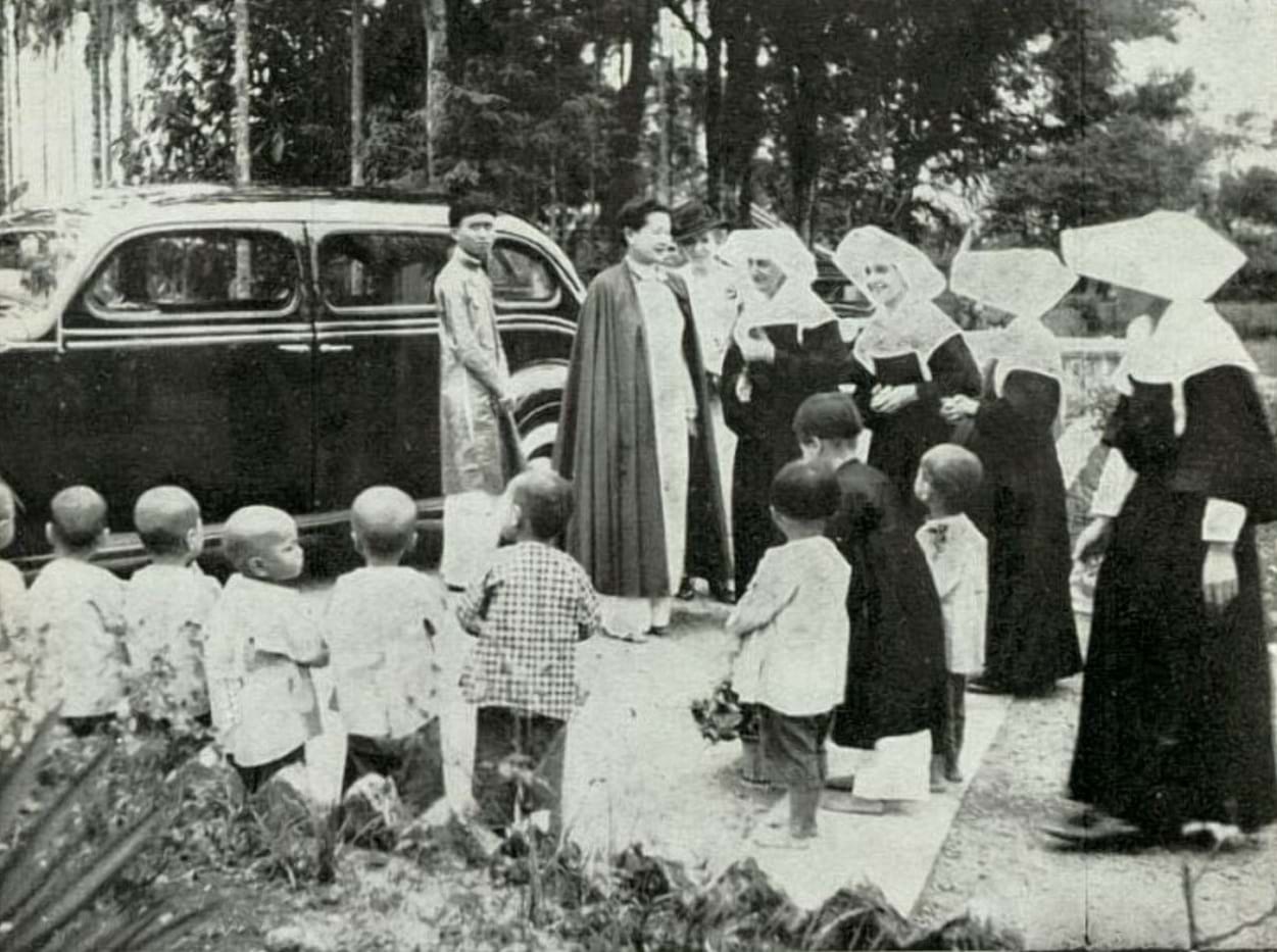 Bức ảnh hiếm Hoàng hậu Nam Phương thăm cô nhi viện tại Kim Long- Huế 1939. Ảnh: TGCC