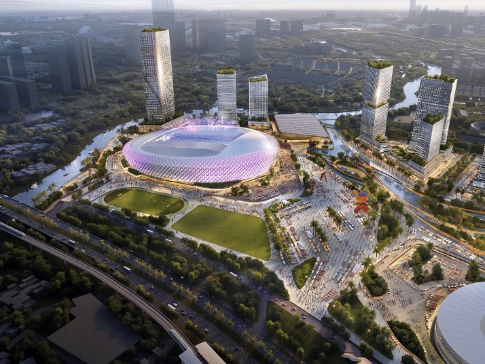 Các hạng mục chính của dự án bao gồm sân vận động hiện đại với sức chứa từ 65.000 đến 75.000 chỗ ngồi, được kỳ vọng là sân vận động lớn nhất Việt Nam; nhà thi đấu tổng hợp 18.000 chỗ; trung tâm thể thao dưới nước; học viện bóng đá; bệnh viện thể thao; trung tâm triển lãm cùng hệ thống công viên công cộng.