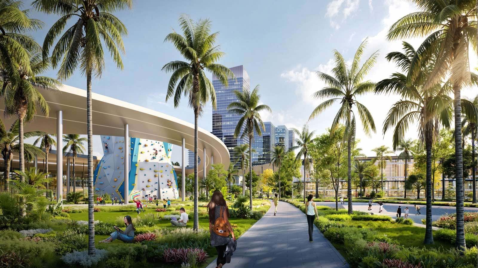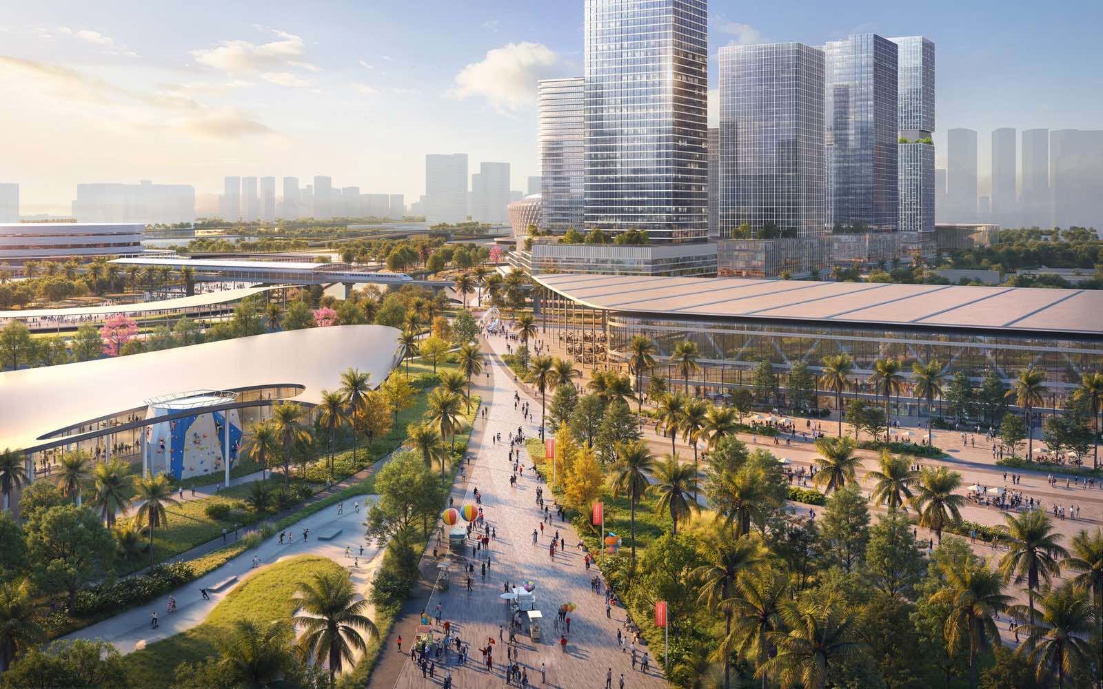 Bên cạnh đó là khu dịch vụ – công cộng đô thị với các hạng mục phục vụ vận động viên, huấn luyện viên và khách mời; quảng trường trung tâm; bệnh viện thể thao; trung tâm hội nghị – triển lãm. Dự án cũng dành quỹ đất đáng kể cho cây xanh, không gian công cộng, mặt nước và cảnh quan sinh thái; hệ thống hạ tầng kỹ thuật, giao thông nội khu; cùng khu di tích, tôn giáo, trong đó có khu di tích Bưng Sáu Xã.