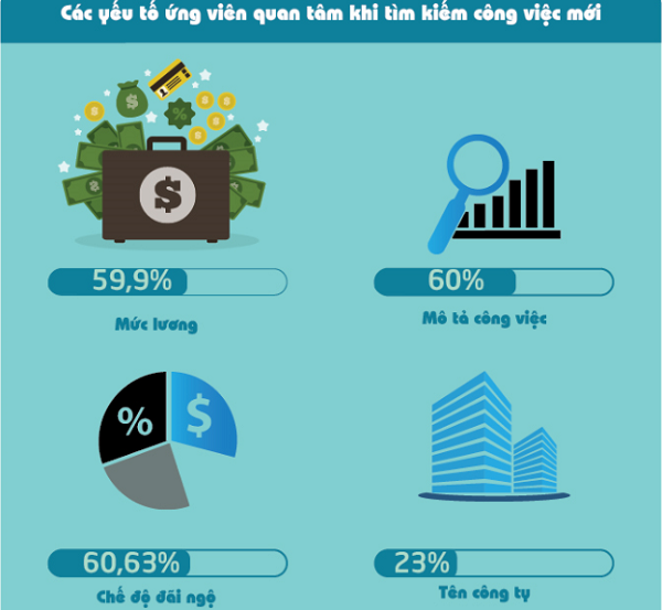 Có 91% công ty chọn mạng việc làm trực tuyến là kênh tuyển dụng chính và con số này với ứng viên là 65%. Về thói quen ứng tuyển của ứng viên, 73% cho rằng môi trường làm việc là thông tin hàng đầu để họ quyết định ứng tuyển, chỉ 23% cho rằng danh tiếng công ty là yếu tố hàng đầu để cân nhắc nộp hồ sơ.