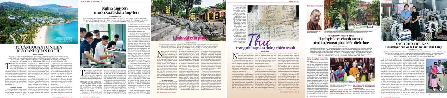 - Đại sứ Bhutan Kinzang Dorji: “Hạnh phúc và chánh niệm là nền tảng của sự phát triển đích thực” (Nguyễn Đặng Phương Linh): Ngài Kinzang Dorji chia sẻ về Thành phố Chánh niệm Gelephu – một đại dự án đang được Vương quốc Hạnh phúc khởi dựng. Đây không chỉ là một khu hành chính đặc biệt rộng 2.500km² mà còn là thông điệp mạnh mẽ của Bhutan: tiến bộ đích thực phải kết hợp giữa tăng trưởng kinh tế và hạnh phúc tinh thần.