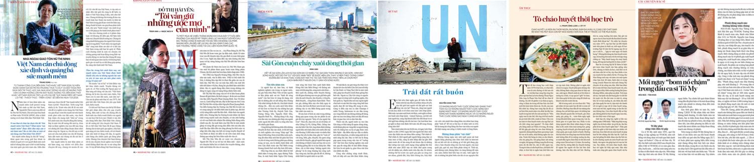 Và những bài viết đặc sắc mang phong cách Người Đô Thị của các tác giả được bạn đọc yêu mến: Vì dân: đạo của người làm quan, “Sách cho Việt Nam”: câu chuyện của Võ Tá Hân và Trần Hữu Dũng, Những người già ta không muốn có, Du ký đường xa: văn hóa bắt đầu từ chuyện nhỏ, Sài Gòn cuộn chảy xuôi dòng thời gian, Nghĩa ăng-ten muốn xuất khẩu ăng-ten, Thư trong những năm tháng chiến tranh, Đỗ Thị Hải Yến: “Tôi vẫn giữ những ước mơ của mình”, Trái đất rất buồn, Tô cháo huyết thời học trò...
