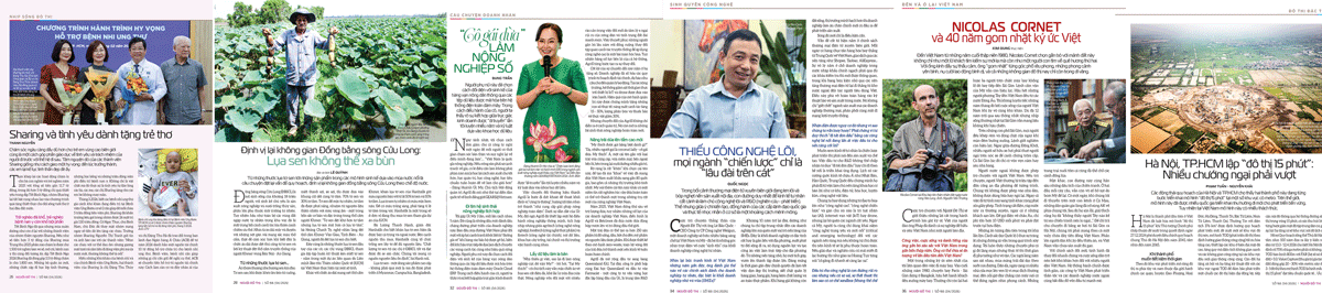 - Định vị lại không gian ĐBSCL: Lụa sen không thể xa bùn (Lê Quỳnh): Từ những thước lụa tơ sen tới những sản phẩm trong các mô hình sinh kế dựa vào mùa nước nổi là câu chuyện đặt lại vấn đề quy hoạch, định vị lại không gian đồng bằng sông Cửu Long theo chế độ nước.