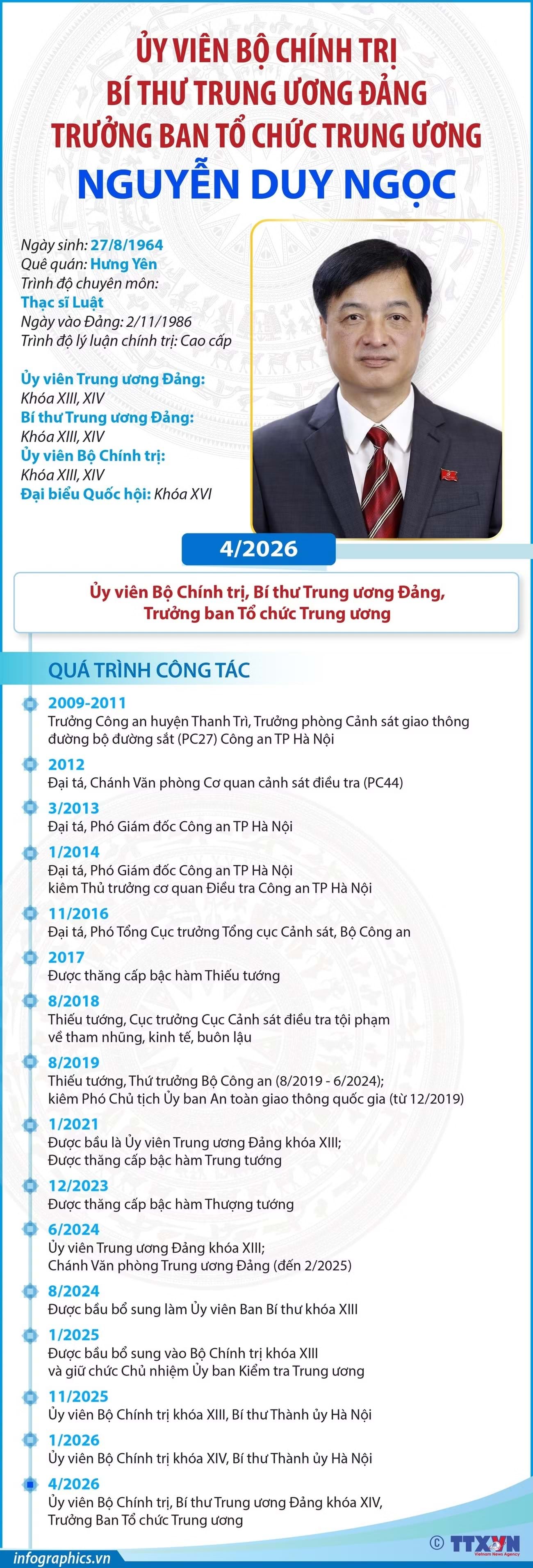 Tiểu sử Ủy viên Bộ Chính trị, Trưởng ban Tổ chức Trung ương Nguyễn Duy Ngọc
