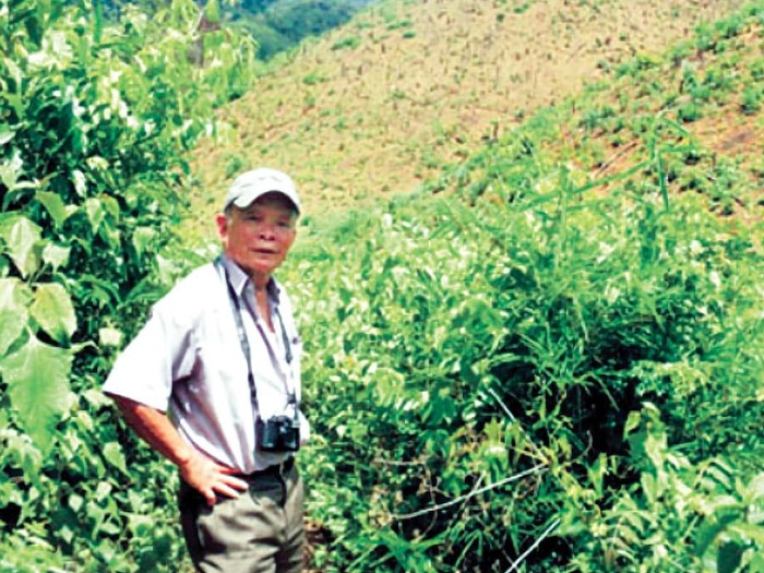 Nguyên Ngọc trong một chuyến điền dã núi rừng Tây Nguyên. Ảnh: Đan Phượng