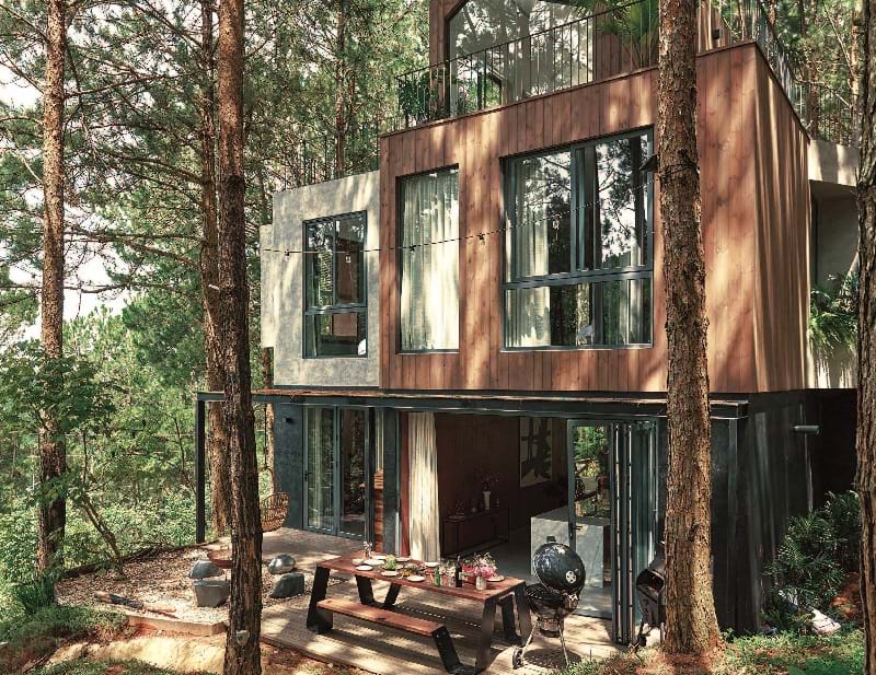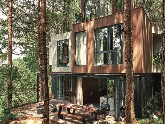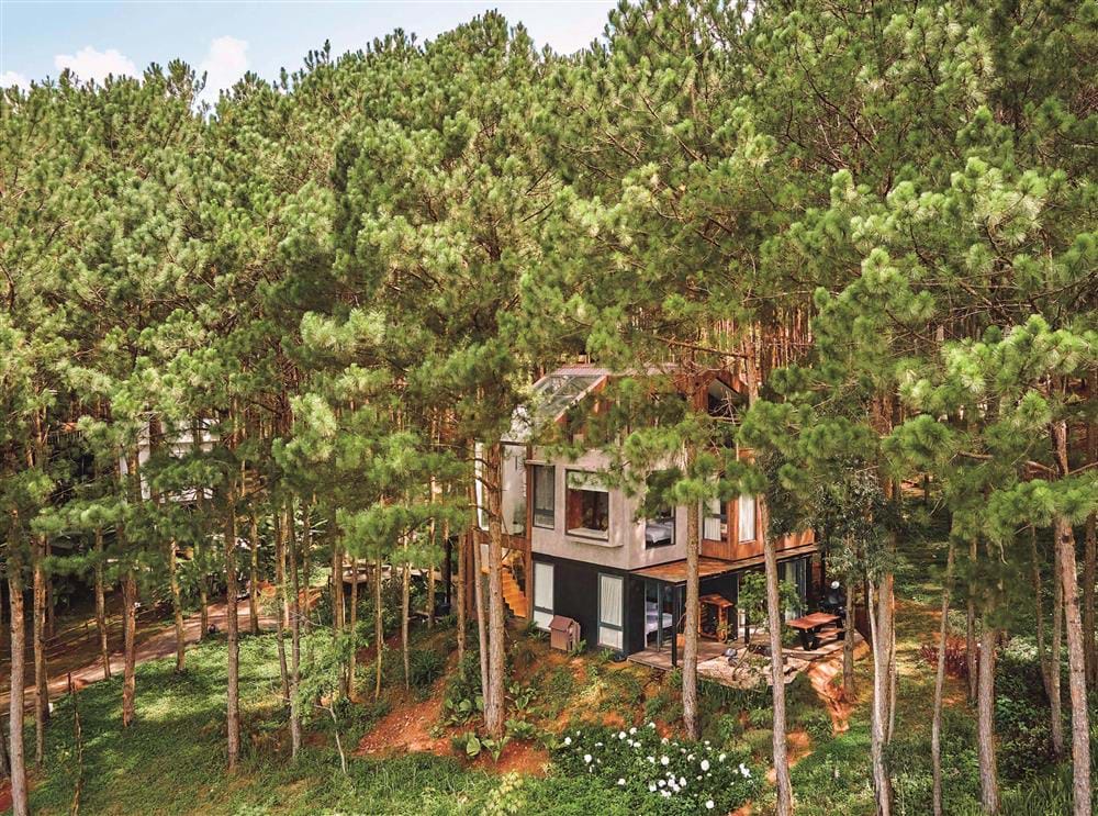 Ẩn mình giữa rừng thông ngút ngàn, Les Rêveurs Dalat là một biệt thự nghỉ dưỡng tiện nghi với 4 phòng ngủ, phòng khách, bếp và những khu sinh hoạt chung tiếp nối với thiên nhiên. Công trình mang ngôn ngữ hiện đại và thân thiện nhờ sự kết hợp của bê tông cùng gỗ tự nhiên và những mảng kính lớn mở ra bên ngoài.