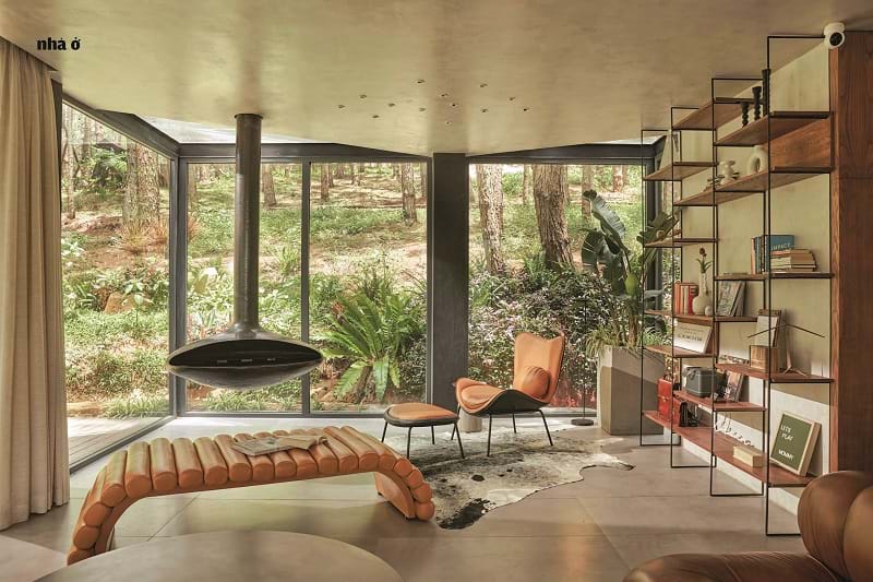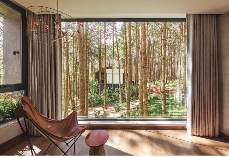 “Bức tranh” thơ mộng của rừng thông vào những thời khắc trong ngày là tâm điểm của mọi góc nhìn từ phòng đọc sách, bàn ăn cho đến các phòng ngủ.