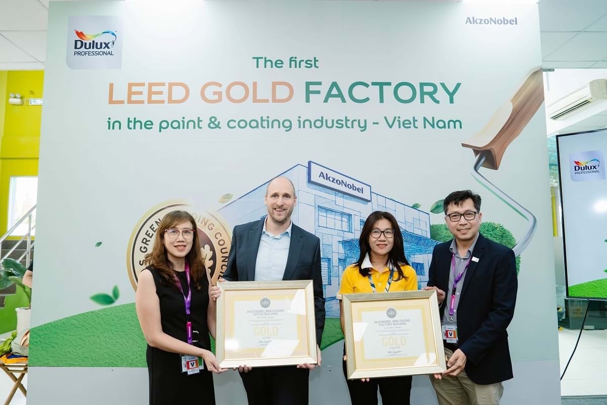 Nhà máy AkzoNobel tại Bình Dương là khối nhà máy đầu tiên đạt được cấp độ Gold (Vàng) trong lĩnh vực sơn và chất phủ tại thị trường Việt Nam.