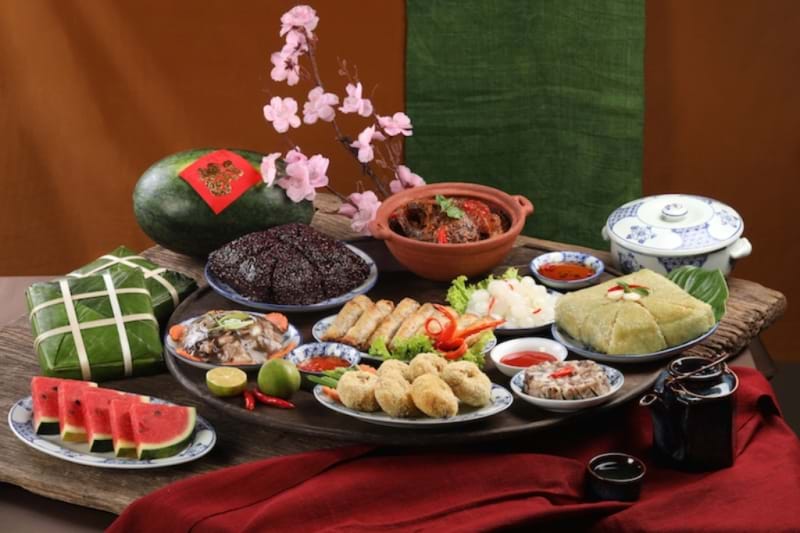 Các món ngon ngày Tết của VinMart Cook khá đa dạng và đều là những đặc sản quen thuộc với người Việt như bánh chưng truyền thống, bánh chưng nếp cẩm, bánh tét truyền thống, giò xào, cá trắm kho làng Vũ Đại, thịt heo nấu đông, tai heo ngâm dấm, nem rán, chân gà xả ớt, dưa hành, củ kiệu chua ngọt… Nguyên liệu chế biến được các đầu bếp VinMart Cook giàu kinh nghiệm tuyển chọn cẩn thận và kỹ lưỡng, đạt tiêu chuẩn nghiêm ngặt của hệ thống 36 phòng/trạm kiểm nghiệm vệ sinh an toàn thực phẩm, đảm bảo sức khỏe cho người tiêu dùng an tâm ăn ngon, đón Tết an lành.