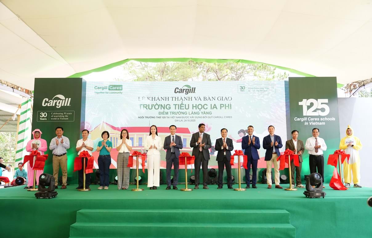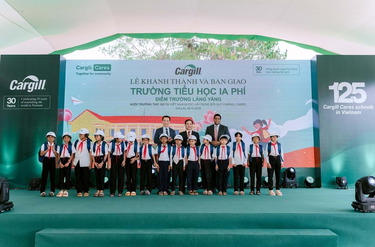 Một trong những dấu mốc quan trọng của Cargill nhân dịp này là lễ khánh thành điểm trường Cargill Cares thứ 125 tại làng Yăng (xã Ia Phí, tỉnh Gia Lai), góp phần mang lại môi trường học tập an toàn, khang trang cho trẻ em vùng khó khăn. Đây là minh chứng sinh động cho cam kết “phụng sự cộng đồng” mà Cargill theo đuổi suốt nhiều năm qua, hướng tới mục tiêu hoàn thành 150 điểm trường Cargill Cares vào năm 2030.