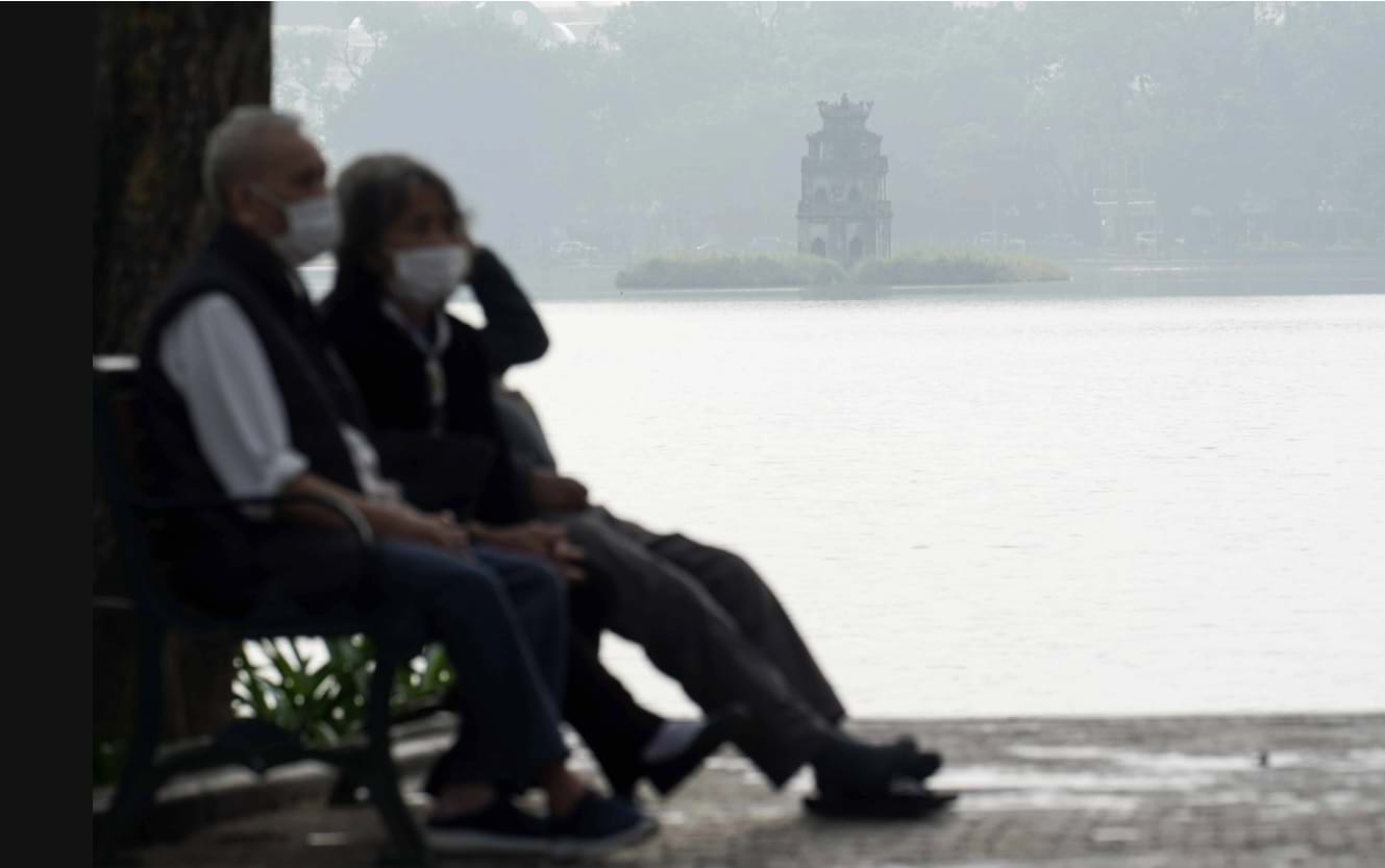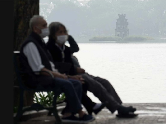 Người dân đeo khẩu trang bên hồ Hoàn Kiếm ngày 2.12, chất lượng không khí ghi nhận mức nguy hiểm sức khỏe. Ảnh: VNExpress