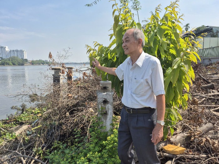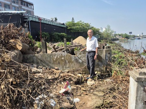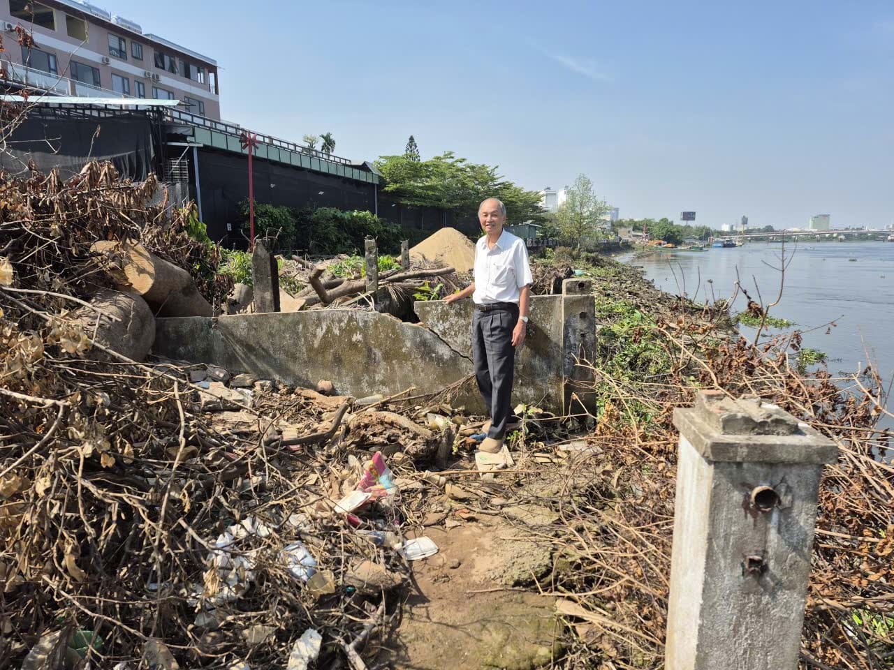 Ông Phan Chánh Dưỡng trên phần đất đã bàn giao cho chính quyền địa phương để thực hiện Dự án Chống sạt lở bán đảo Thanh Đa - Đoạn 2.