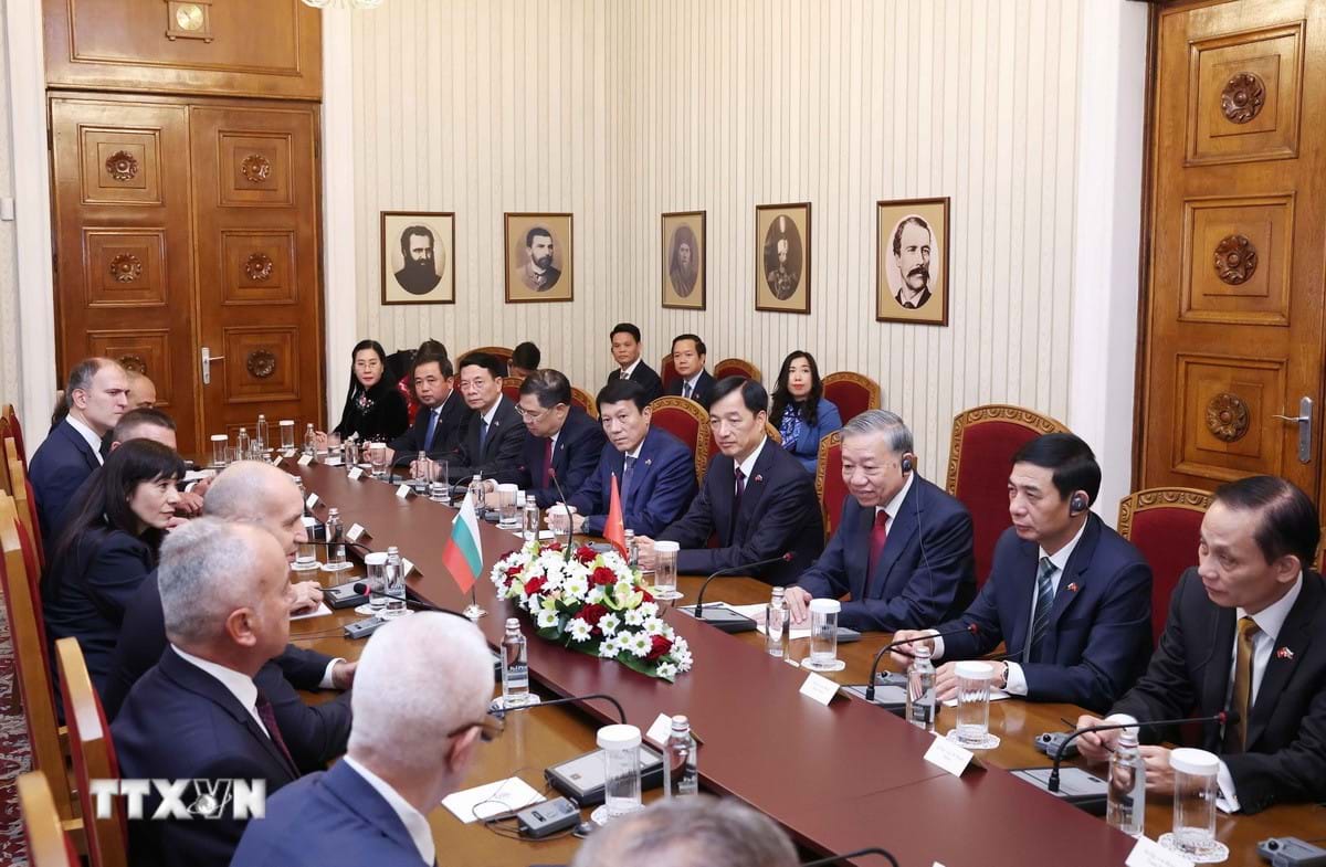 Tổng Bí thư Tô Lâm đề nghị Tổng thống và Chính phủ Bulgaria tiếp tục tạo thuận lợi cho cộng đồng người Việt Nam sinh sống ổn định, hội nhập và đóng góp cho kinh tế- xã hội của Bulgaria, làm cầu nối hữu nghị cho hai nước.