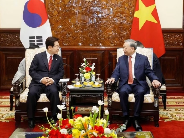 Tổng Bí thư, Chủ tịch nước Tô Lâm nhiệt liệt chào mừng Tổng thống Lee Jae Myung và Phu nhân cùng Đoàn đại biểu cấp cao Chính phủ Hàn Quốc thăm cấp Nhà nước tới Việt Nam; bày tỏ trân trọng và đánh giá cao Tổng thống Lee Jae Myung là vị khách đầu tiên thực hiện chuyến thăm cấp Nhà nước ngay sau khi Việt Nam kiện toàn Ban lãnh đạo sau bầu cử Quốc hội khóa XVI; nhấn mạnh chuyến thăm là minh chứng sống động nhất cho mối quan hệ Đối tác chiến lược toàn diện bền chặt, hiệu quả và sự tin cậy chính trị cao giữa Việt Nam và Hàn Quốc.