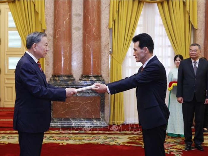 Tổng Bí thư, Chủ tịch nước Tô Lâm tiếp Đại sứ Triều Tiên tại Việt Nam Ri Sung Guk đến trình Quốc thư (Hà Nội, 12.8.2024). Ảnh: Lâm Khánh/TTXVN