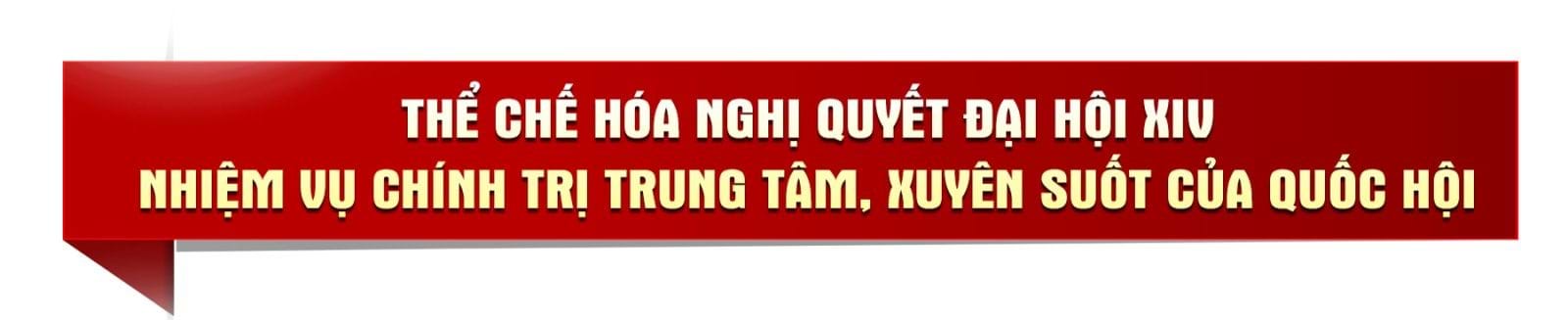 Toàn bộ những định hướng đó phải được Quốc hội chuyển hóa thành hệ thống pháp luật đồng bộ, thống nhất, khả thi và ổn định. Quốc hội xác định rõ: chất lượng và tiến độ thể chế hóa Nghị quyết Đại hội XIVchính là thước đo quan trọng nhất để đánh giá hiệu lực, hiệu quả hoạt động của Quốc hội trong nhiệm kỳ tới. Mọi chương trình xây dựng luật, pháp lệnh, nghị quyết; mọi quyết định về phát triển kinh tế - xã hội, ngân sách nhà nước, đầu tư công, quốc phòng, an ninh, đối ngoại… đều phải phục vụ trực tiếp cho việc thực hiện các mục tiêu, nhiệm vụ mà Đại hội XIV đã đề ra.
