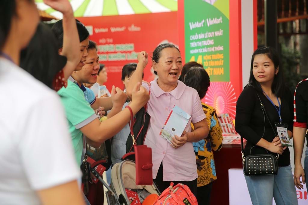 Bên lề Hội thảo, người chơi còn được tham gia nhiều chương trình hoạt náo, game mini tại các khu trưng bày của VinMart & VinMart+, VinEco và các nhà cung cấp… với nhiều trải nghiệm thú vị. Trong ảnh là một người chơi hào hứng trả lời các câu hỏi về kiến thức an toàn thực phẩm.