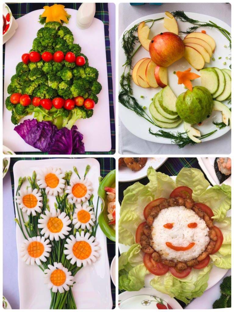 Đều là những đầu bếp không chuyên nhưng với chủ đề “Sạch tươi ngon, cùng con khôn lớn”, các ông bố bà mẹ lại hoá thiên tài khi biến những loại rau, củ quả đơn giản thành những món ăn vô cùng hấp dẫn dành cho con, từ cây thông noel làm bằng bông cải xanh đến bông hoa hướng dương mặt cười làm từ xà lách, cà chua….