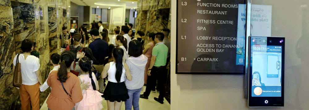 Ngày 9.9.2025, nhiều cư dân khu căn hộ khách sạn Wyndham Danang Golden Bay (Đà Nẵng) đã phản đối quản lý tòa nhà tự ý thiết lập hệ thống nhận diện khuôn mặt (Face ID) tại khu vực thang máy thay cho thẻ từ khi chưa được cư dân đồng thuận và lo ngại bị thu thập dữ liệu cá nhân nhạy cảm. Ảnh: Mạnh Hùng - Thu Giang