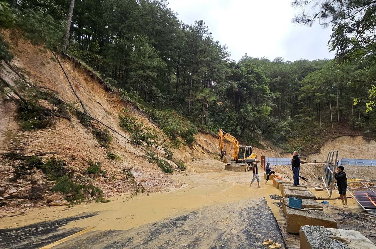 Khuya 3.12, rạng sáng 4.12, khu vực Đà Lạt có mưa rất lớn kéo dài. Trên đèo Mimosa (phường Xuân Hương - Đà Lạt) xảy ra nhiều điểm sạt lở, trong đó nghiêm trọng nhất là đoạn Km 226+600 – Km226+800, khi nước từ trên đồi cao hàng chục mét cuốn đất đá đổ xuống lấp đèo.