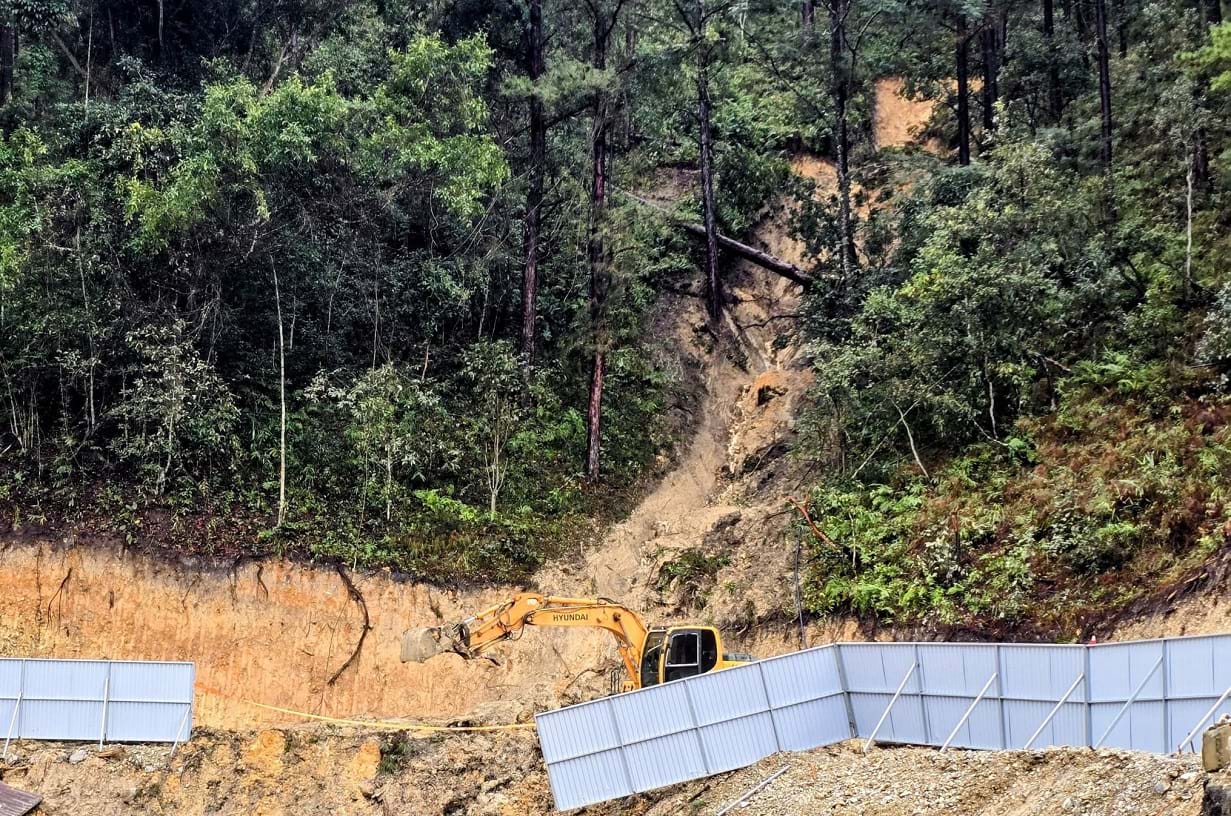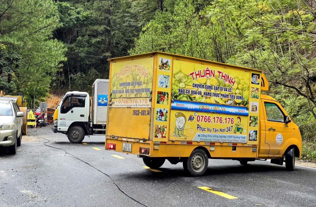 Ngoài điểm sạt lở lớn ở đường tránh tạm, trên đèo Mimosa còn xuất hiện một số điểm sạt lở nhỏ, cây thông ngã ra đường đang chờ xử lý.