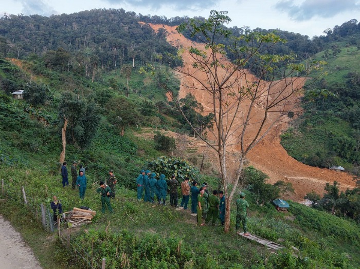 Ông Trần Hữu Ích cho biết, trước tình trạng sạt lở còn diễn biến phức tạp, các lực lượng chuyên môn, công binh đưa các thiết bị, máy móc như flycam để khảo sát; chưa thể đưa người vào nơi sạt lở để tìm kiếm.