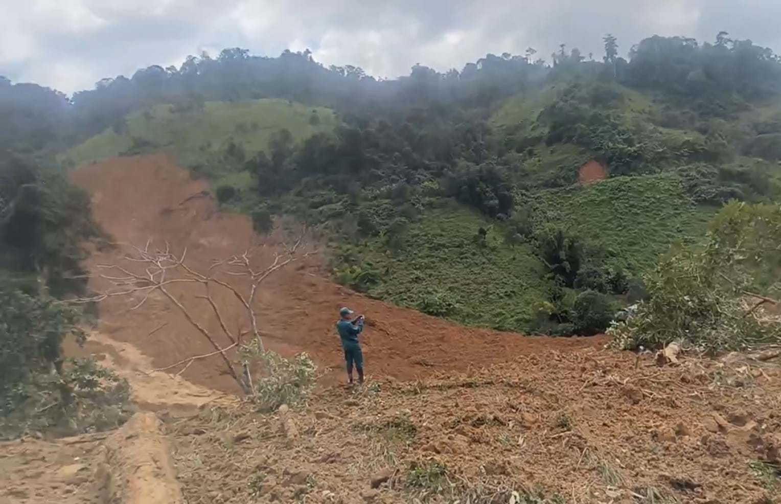 Quả đồi bị sạt trượt dài cả cây số.