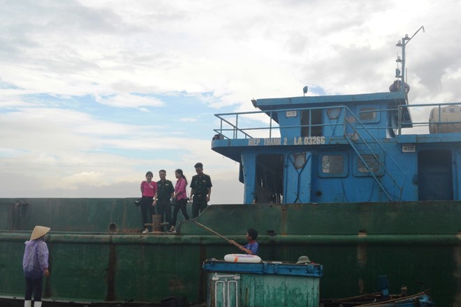 Lực lượng chức năng kiểm tra chiếc tàu. Ảnh: V.L
