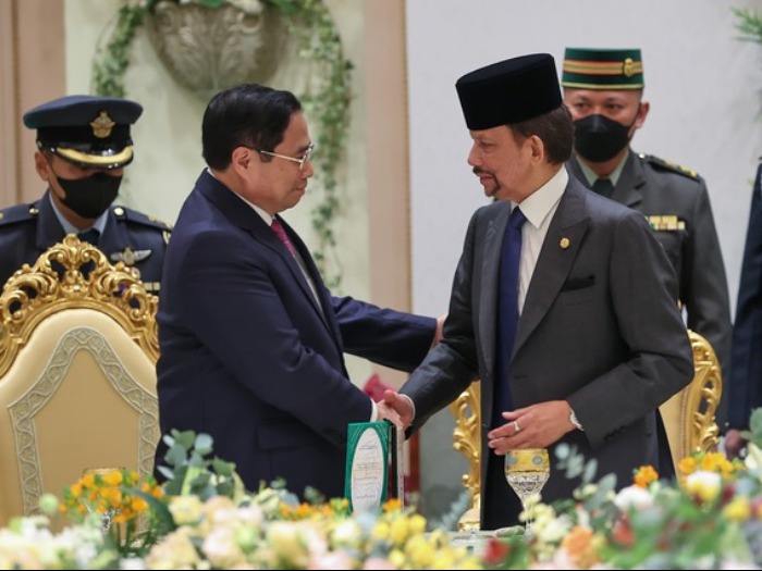 Thủ tướng Chính phủ Phạm Minh Chính cảm ơn sự đón tiếp trọng thị, nồng ấm của Quốc vương và Hoàng gia Brunei; trân trọng chuyển lời thăm hỏi thân tình của Tổng Bí thư Nguyễn Phú Trọng, Chủ tịch Quốc hội Vương Đình Huệ và Lãnh đạo cấp cao Việt Nam tới Quốc vương và Hoàng gia.